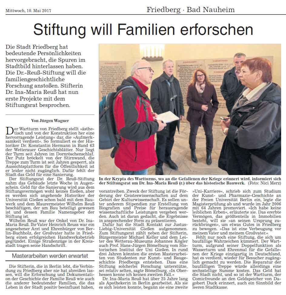 Artikel "Stiftung will Familien erforschen", Wetterauer Zeitung vom 10.05.2017