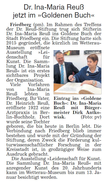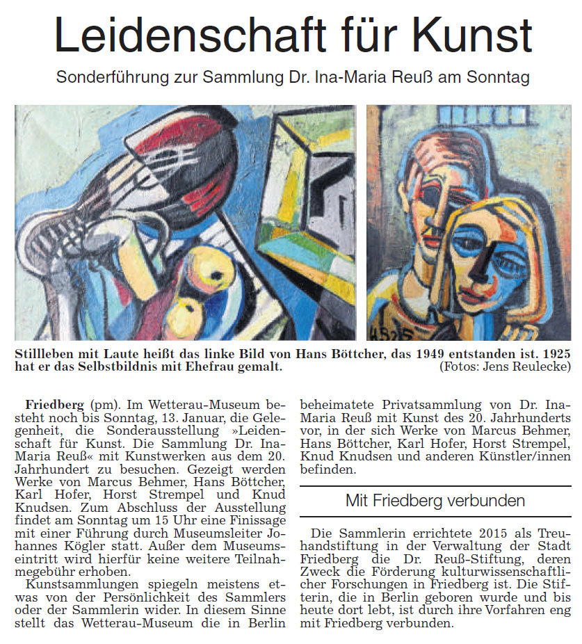 Artikel "Leidenschaft für Kunst", Wetterauer Zeitung vom 12.01.2019
