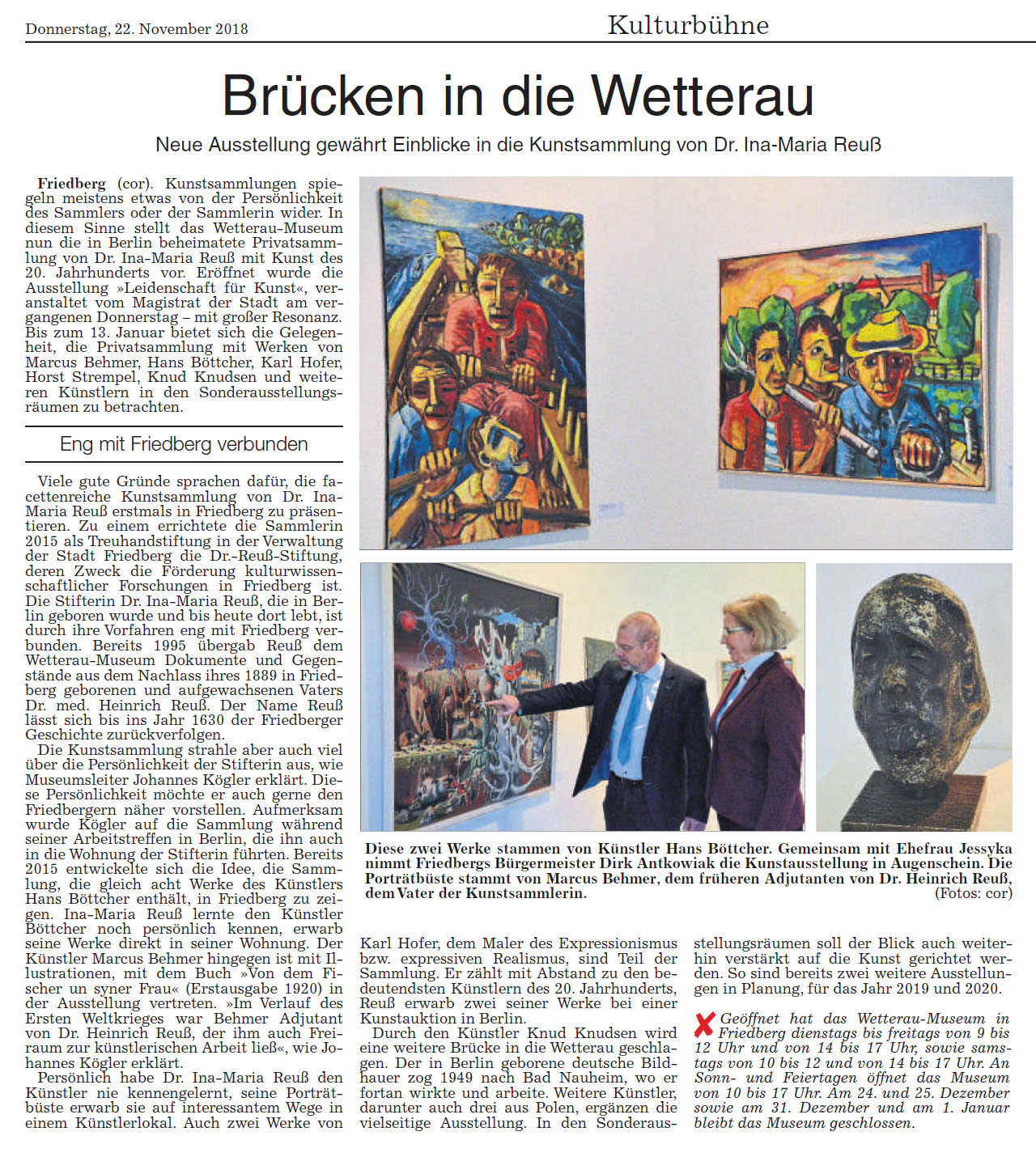 Artikel "Brücken in die Wetterau", Wetterauer Zeitung vom 22.11.2018